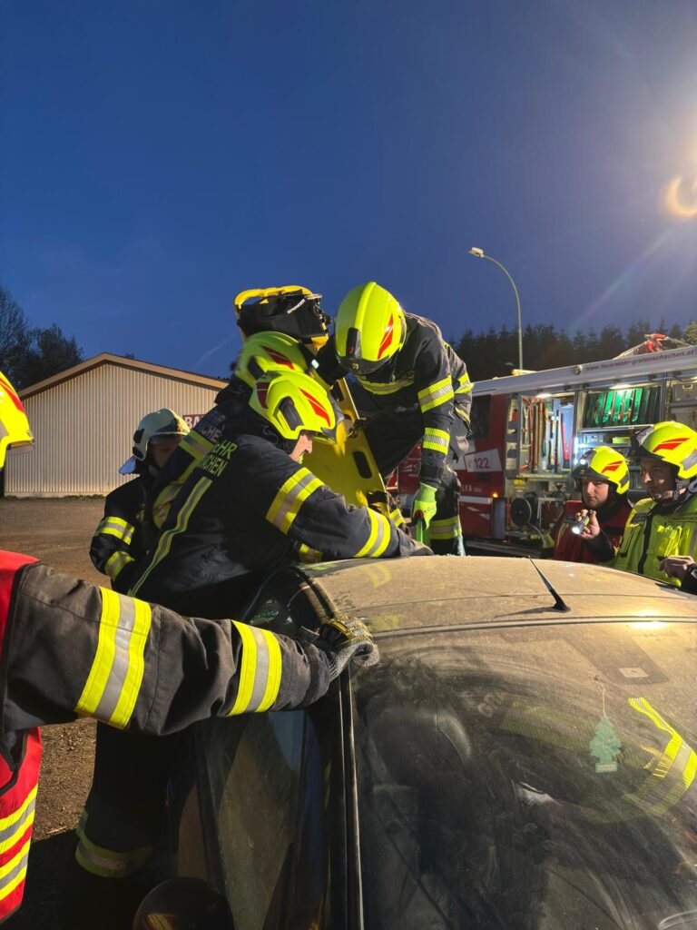 Bereits gestern ging es bei unserer technischen Übung ordentlich zur Sache: Intensive Schnitttechniken und realitätsnahe Personenrettungs‑Techniken standen am Programm. 💪🛠️